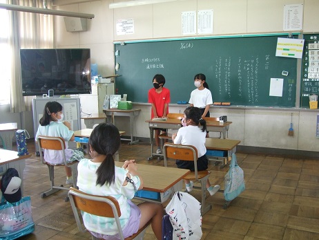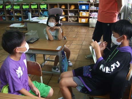 昨日(7/12)と今日(7/13)8:20~8:30 通学団会議を行いました。各通学団に分かれて、昨日は登校のことについて、今日は下校のことについて「よかったこと、気になったこと、2学期に向けてみんなで気をつけること」など話し合いました。登校後、通学団会議を行う各教室にさっと集まって話し合う、この時間の使い方はとても有効だと思います。短時間でしたが、1学期の登下校について、しっかり振り返ることができました。
