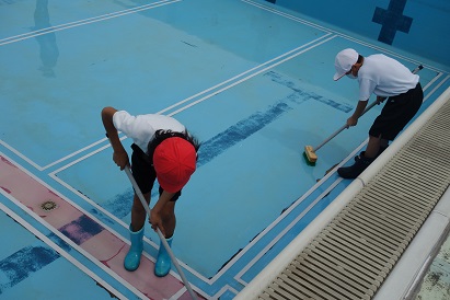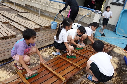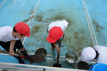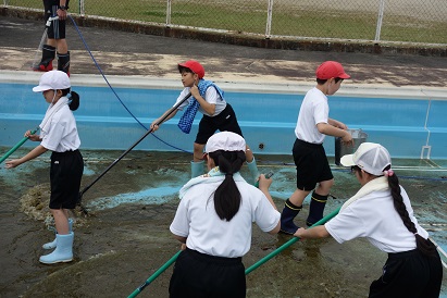 プール掃除お疲れ様でした。草生小学校の子どもたちは本当によく働きます。