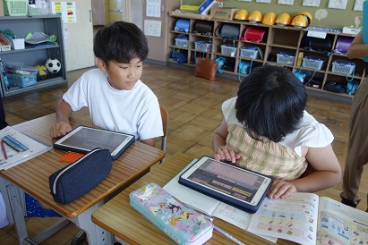 4年生の授業を教員たちが参観しました。お互いの授業を見合って、よりよい授業になるよう研修しています。子どもたちは、落ち着いた様子でいつも通りがんばっていました。