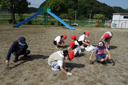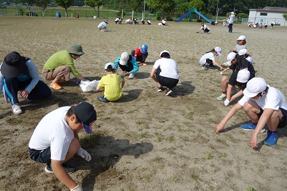 朝8時20分から15分間ほど、運動場の草抜きを全校で行いました。来週もまた行います。みんなの力を合わせて草を抜き、運動場の環境を整えています。