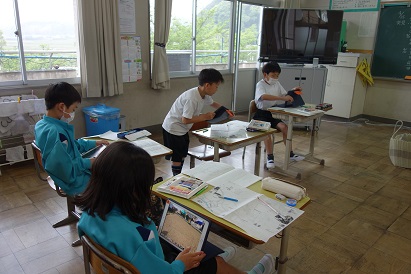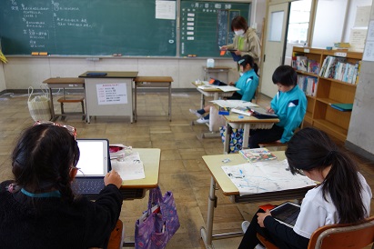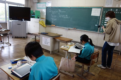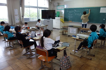 3年生になって、社会科や理科の学習が始まりました。社会科の学習では、校区の様子を調べています。学校の周りを見て気づいたことをタブレットに保存した画像と地図を見ながら、意見を交流していました。2年生のときに、生活科の町たんけんで校区の様子を学習したので、校区を見る目も育っているようです。田植え前の田んぼの様子からわかることについて学習が深まりました。今後、田植え体験をさせていただいたり、あちこちへ校区たんけんに出かけたりして、地形を活かした校区の様子などについて学習する予定です。校区のよいところもたくさん見つけてほしいと思います。