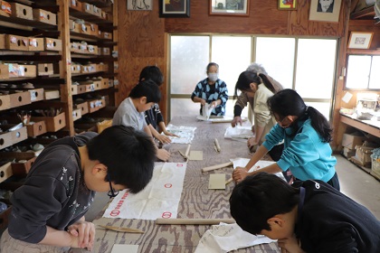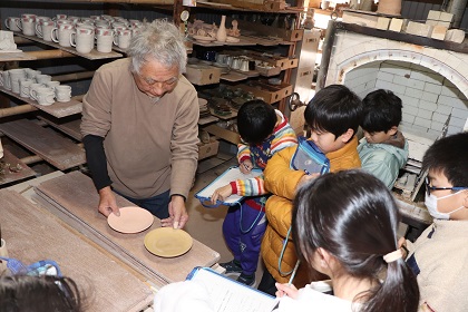 地域の達人に学ぼうの学習では、地域にある「草生窯」へ行き、作品ができるまでの工程を釉薬