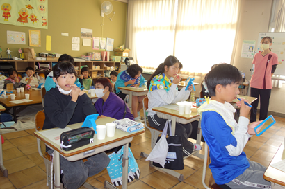 毎日の放送は、朝と給食、掃除の時間にあります。 特に給食の時間は、楽しく聞いてもらえるようクイズや明日の天気予報、今日が誕生日の有名人の紹介など工夫しています。生活委員会から給食のお知らせやクイズなどもあります。毎回がんばっています!
