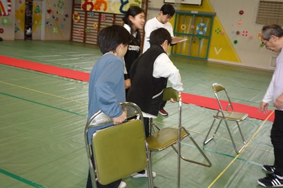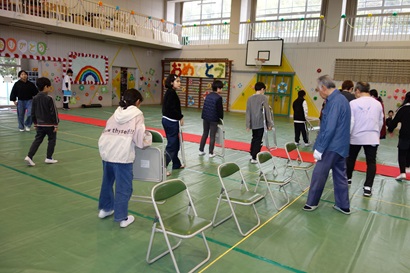 年生が生活科の時間に昔の遊びをいろいろ楽しんでいます。