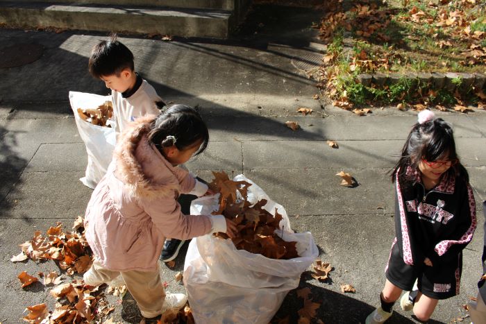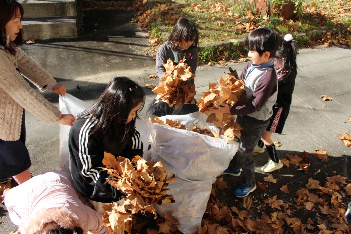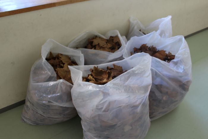 みんなで協力して、こんなにたくさんの落ち葉を集めることができました。