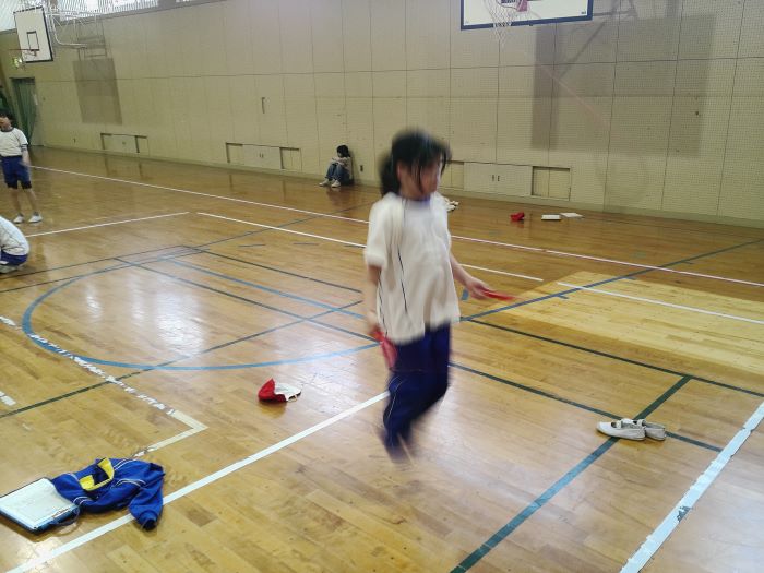 4・5年生は体育の授業でなわとび運動に取り組んでいます。