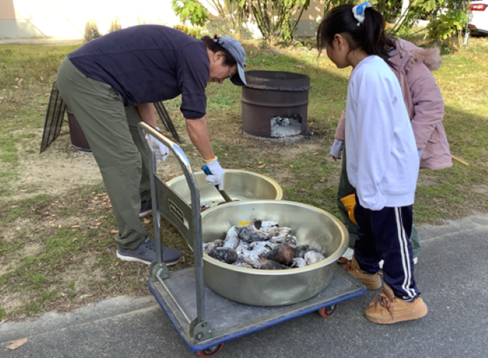 1・2年生が11月に収穫したサツマイモで焼きいもをしました。