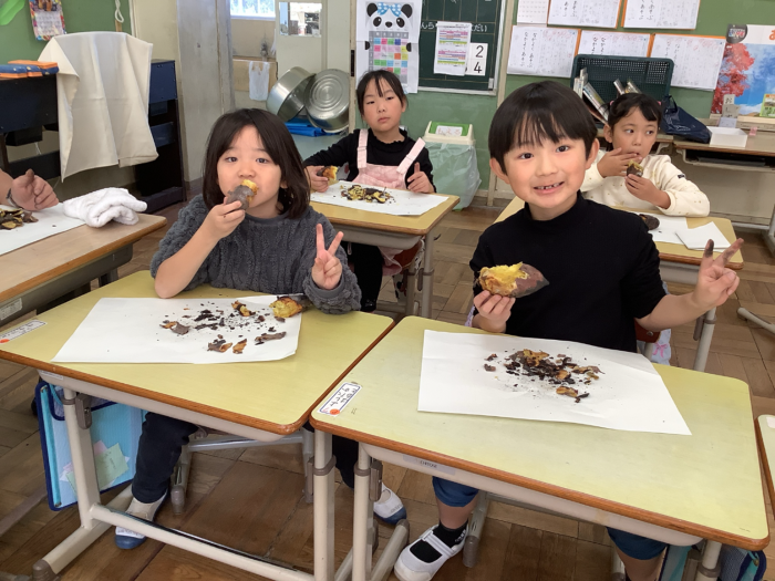 ほくほくの焼きいもがとてもおいしく、みんな「すごくおいしい~!」と言いながら、あっという間に食べてしまいました。