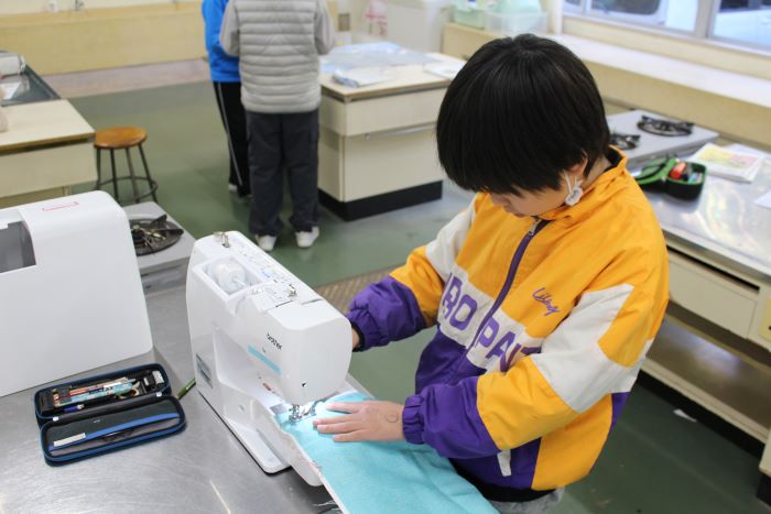 現在、5年生は家庭科の授業でエプロンを作っています。