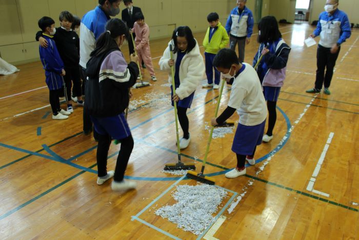 正しいほうきでのごみの掃き方を教えてもらいました。