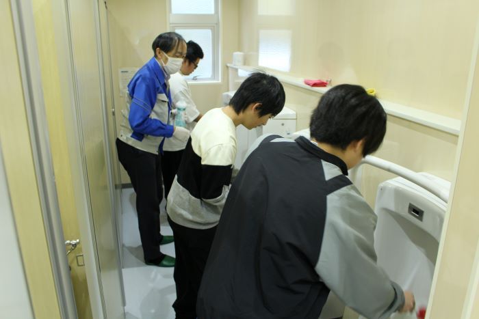 最後は、トイレ掃除です。ポイントは「洗剤をブラシに付けて、目に見えないところをしっかりと磨くこと」だと教えていただきました。