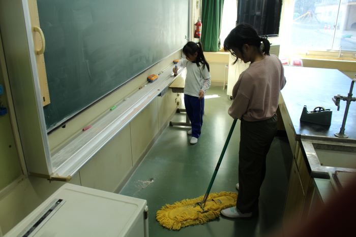 少ない人数での掃除ですが、それぞれの担当場所をしっかりと掃除することができていました。