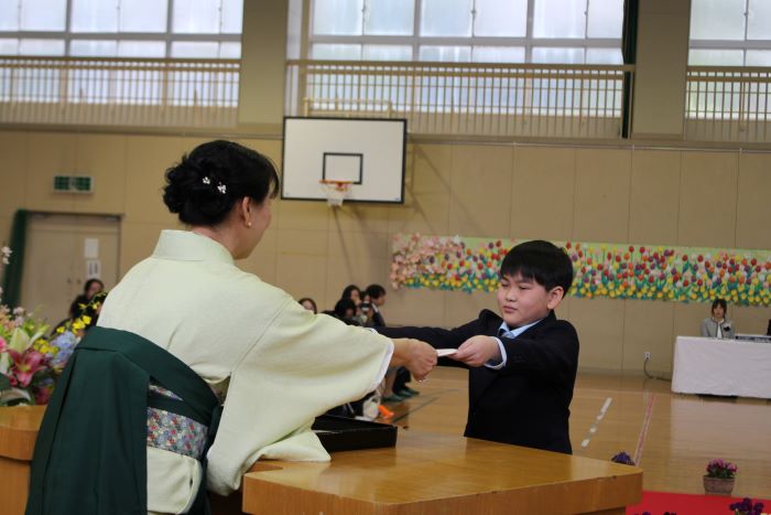 校長先生から、一人ひとり卒業証書を手渡されました。練習の成果もあり、堂々とした姿を見せてくれました。