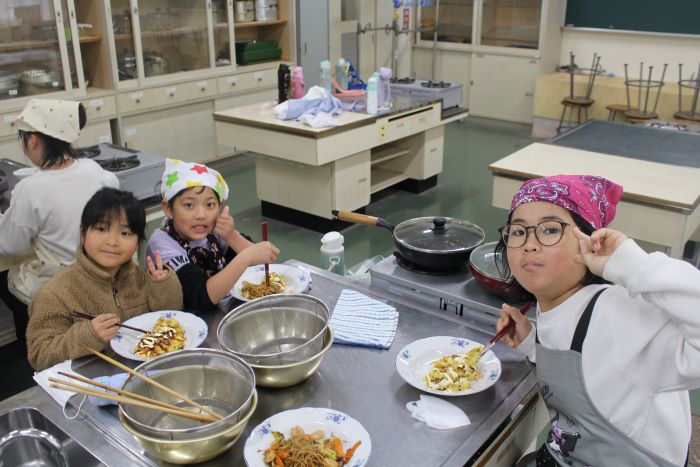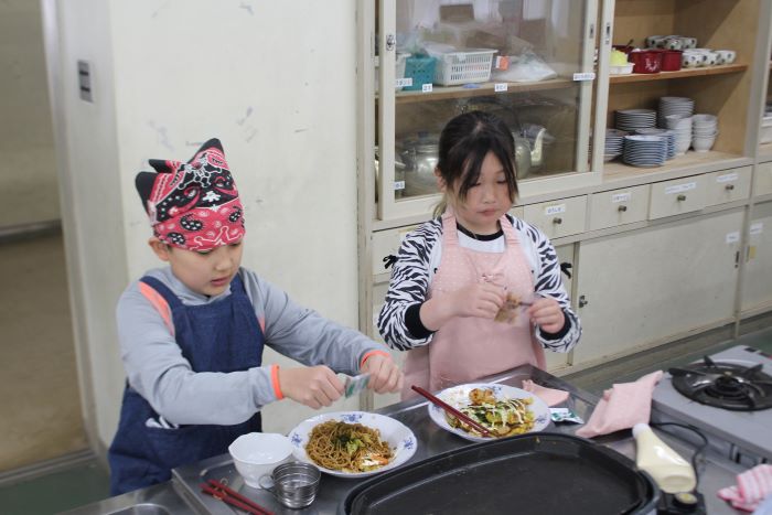 2・3年生がお楽しみ会でお好み焼きを作りました。