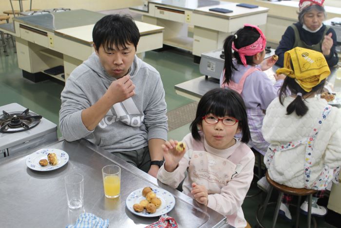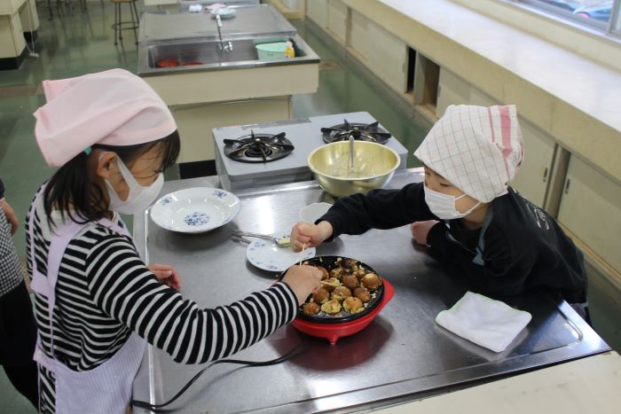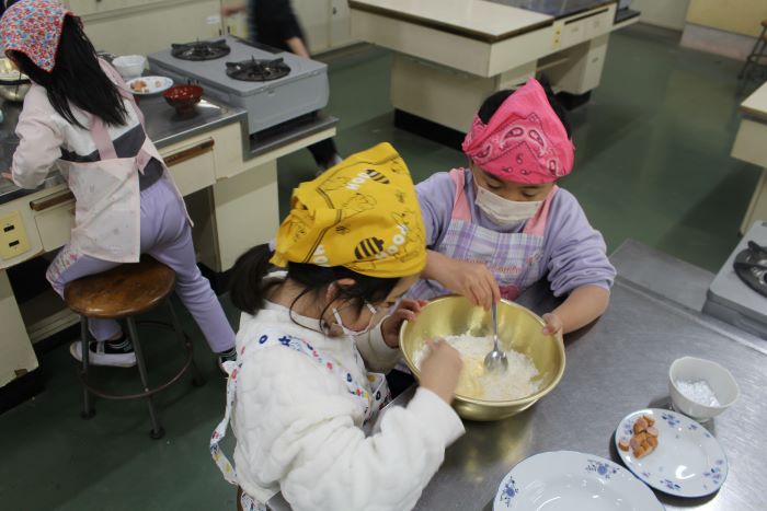 1年生がお楽しみ会でベビーカステラを作りました。