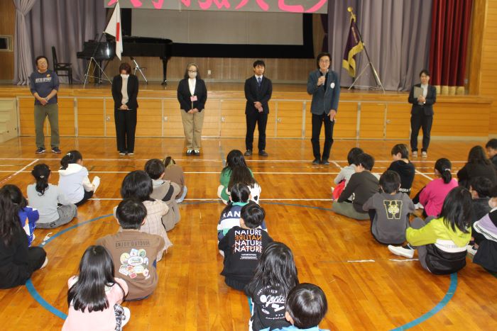修了式の後、離任式が行われました。今年度は8名の教職員が櫛形小学校を去られることになりました。