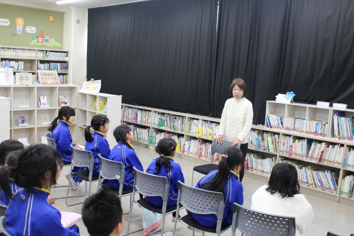 今回は2・3年生となかよし学級の児童に、「てぶくろ」「はなたれ小僧さま」等のお話をしていただきました。いつも楽しいお話をしていただきありがとうございます。