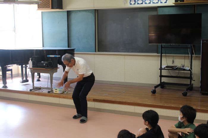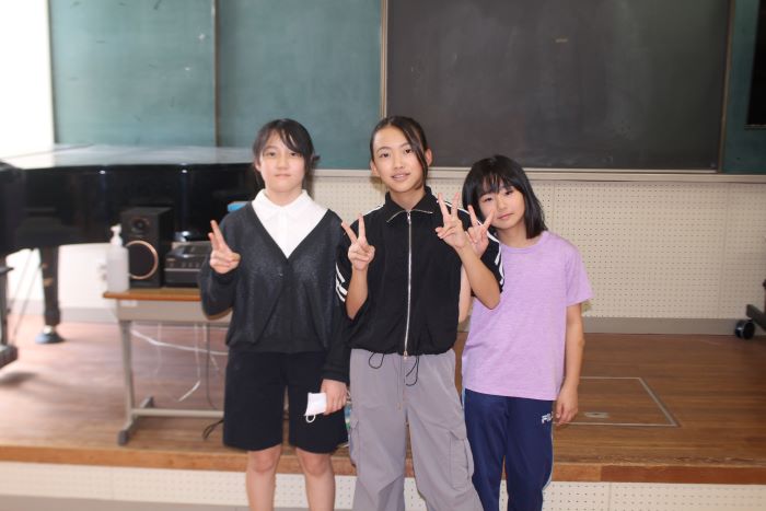 20分休みに、全校児童が音楽室に集まり、前期児童会役員が企画したジェスチャーゲームを行いました。