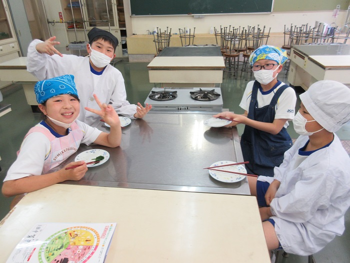 ↑「おいしかった。」「先生、(この後)給食入らんかもしれやん。」自分たちで作った料理は格別だったようでした。