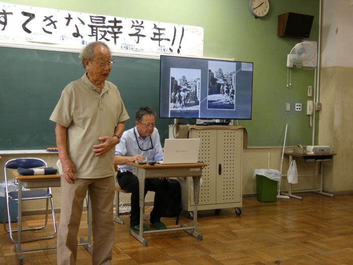 亀井カノン先生からは自身が経験した太平洋戦争時の空襲の様子、戦時中の学校や子どもの生活の様子をお話ししていただきました。
