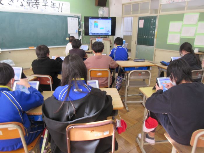 6年生が、卒業ムービー制作するにあたり、広島大学の宮島先生にスクラッチの使い方を指導していただきました。