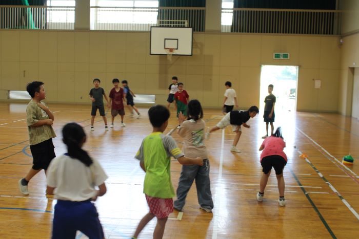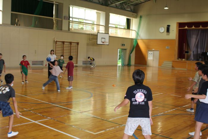 教室で古今東西ゲームをした後、体育館でドッジボールをしました。暑さに気をつけ水分補給等をしながらの活動でしたが、みんな楽しそうでした。