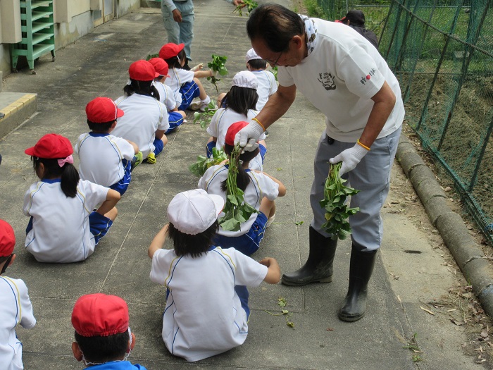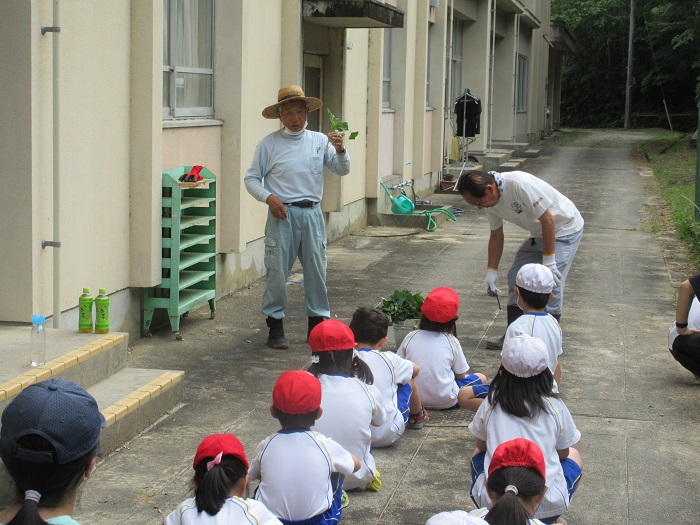 生活科の時間に、地域からゲストティーチャーをお招きして、サツマイモのつるさしの仕方を教えていただきました。