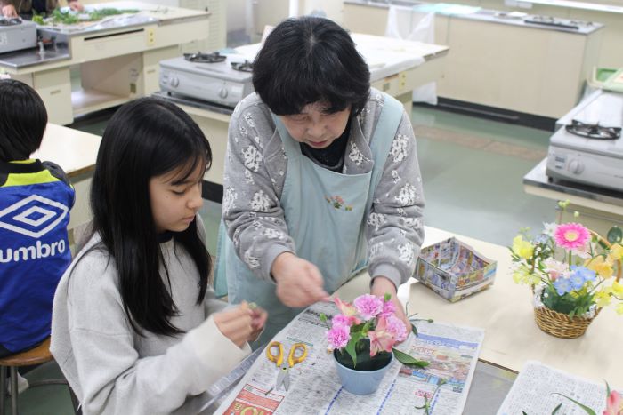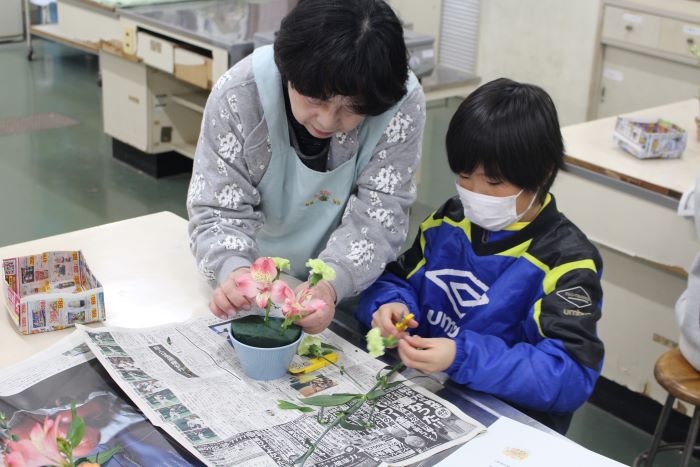 一人一人が工夫しながら花を飾っていきました。できあがった作品はそれぞれが家に持ち帰りました。玄関に飾った児童やお家の人にプレゼントした児童もいました。