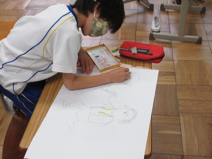 2年生が図工の時間に「楽しかった ドキドキした 運動会」の絵を描いています。今年度の運動会の中で、心に残ったのは何かな?