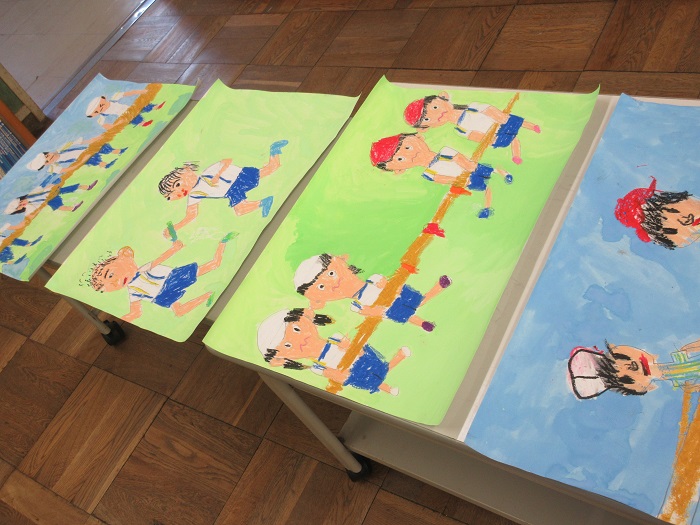 ↑運動会の絵が完成してきました。みんな上手に気持ちを込めて描いているね。