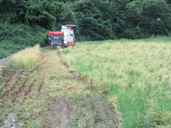 ↑最後に、残った稲をコンバインで刈るところを見せてもらいました。「すごい。」「早