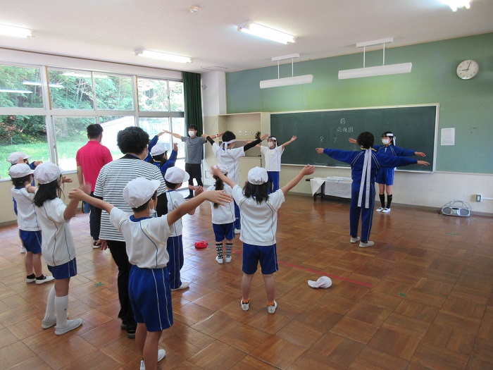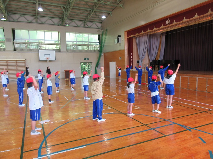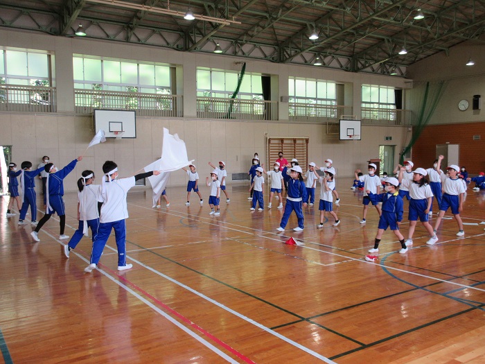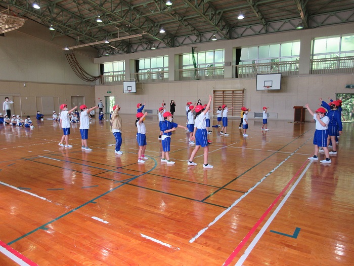 ↑最後に体育館に集合して、赤組白組それぞれの練習の成果を紹介しあいました。当日に向けて、これからも練習を重ねて、運動会を盛り上げていこうね。