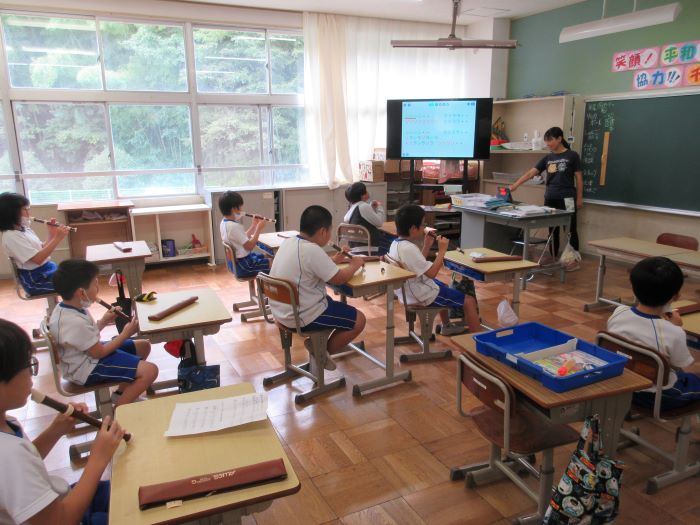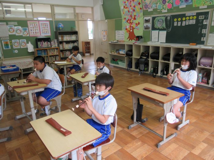 音楽の時間にリコーダーの練習をしました。