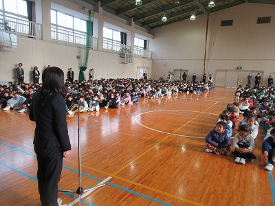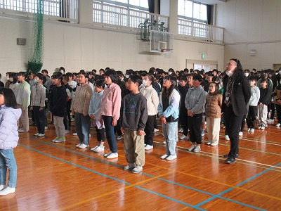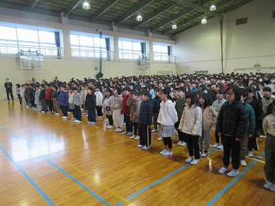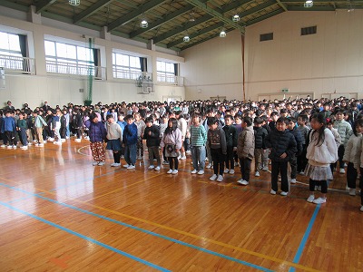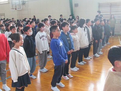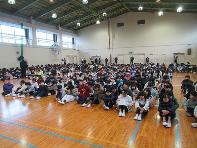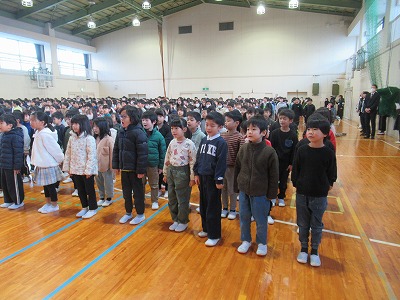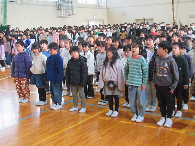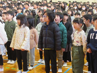 静まり帰った校舎・体育館に全校児童の元気な声が戻ってきました。3学期は50日という短い学期ですがどうぞ宜しくお願いします。