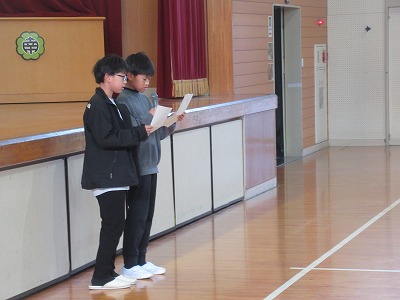 5限目に全校が体育館に集まり、任命式を行いました。