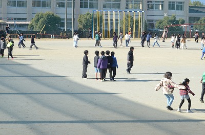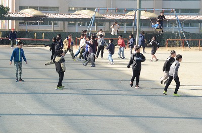 冬休み中、静まり返っていた運動場に元気な姿が戻ってきました。日差しはありましたが風はとても冷たかったです。子どもたちはそれに負けていません。