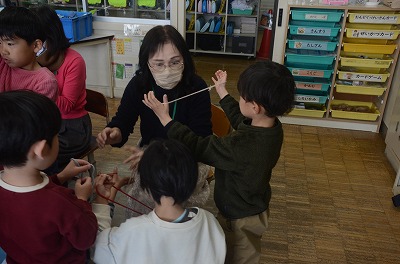 竹とんぼやあやとりなどはじめは上手にできなくても、地域の方からやさしく教えていただいて、できるようになった時とても嬉しそうな表情をしていました。
