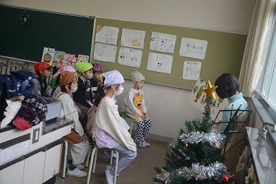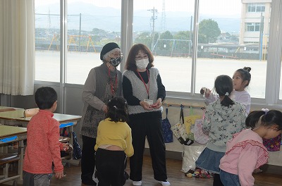 子どもたちに絵本の読み聞かせをしていただきました。子どもたちは絵本の世界に入り込んでいっています。