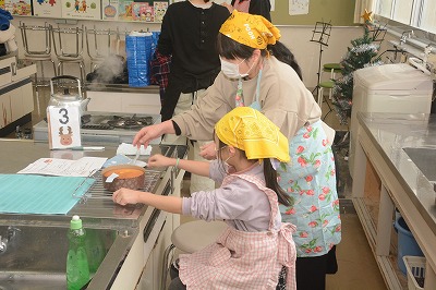 24日(水)午前・午後にわたり、家庭科室で南が丘地区社会福祉協議会によるお菓子作り教室が開かれ、多くの参加者がありました。とっても美味しそうなケーキを自分で作り、試食し満足そうでした。会場では、絵本の読み聞かせもあり、参加者は絵本の世界の中にいるように感じたのではないでしょうか。