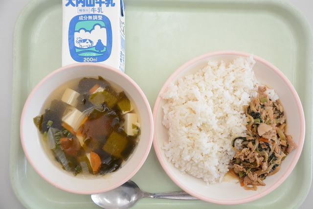 【給食】ご飯 牛乳 ビビンバ わかめスープ