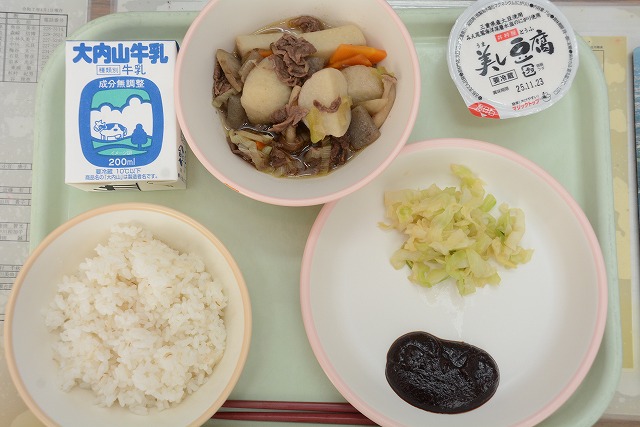 【給食】ご飯 牛乳 芋に 香味漬 豆腐