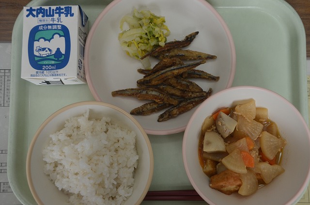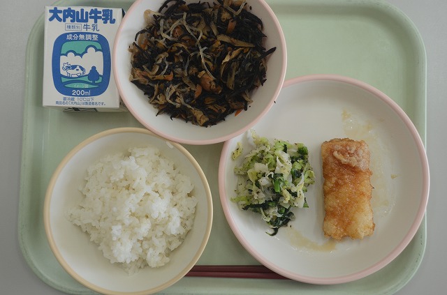 【給食】ご飯 牛乳 いかの甘辛揚げ ひじき