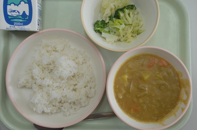 【給食】ご飯 牛乳 カレー ブロッコリー