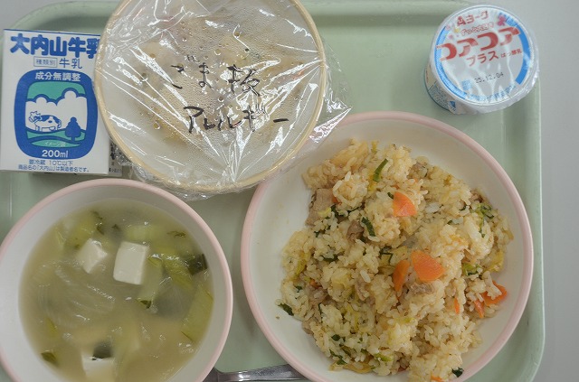 【給食】牛乳 キムチチャーハン トックスープ ヨーグルト