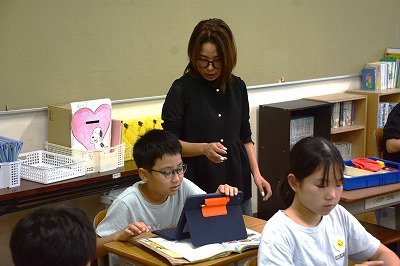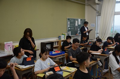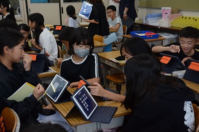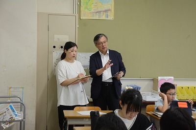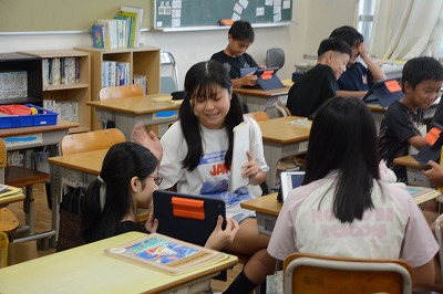 ◇6年生 今日は長年、本校の英語科教育にアドバイザーとしてお世話になっている大学の教授に来ていただき、授業を参観していただくとともに授業者や英語科担当の教員にアドバイスをいただきました。