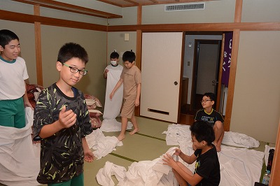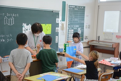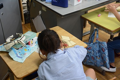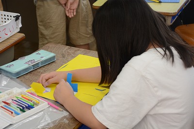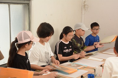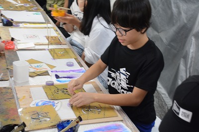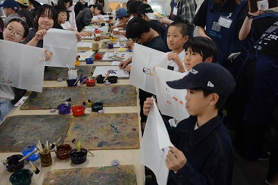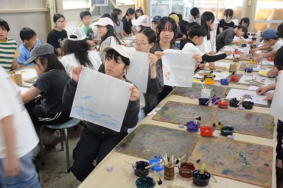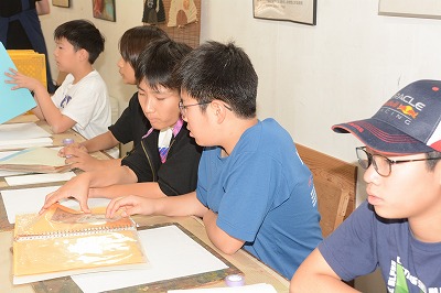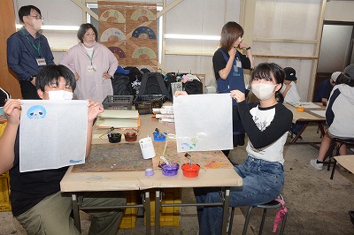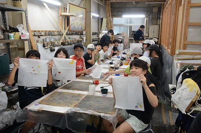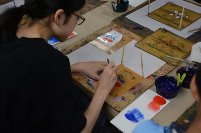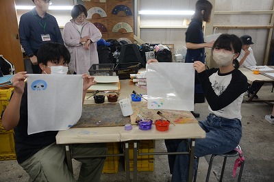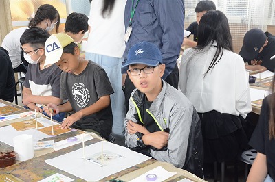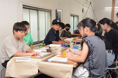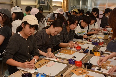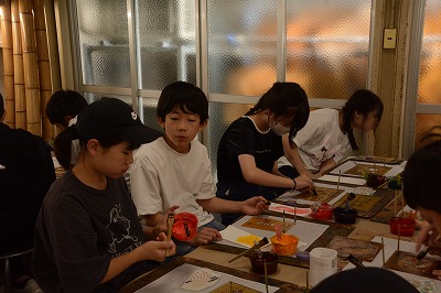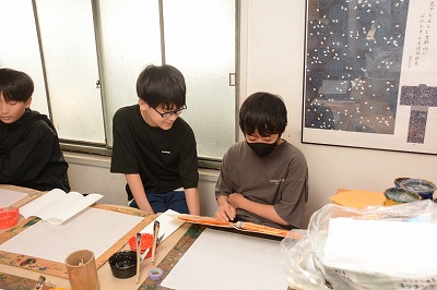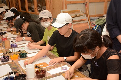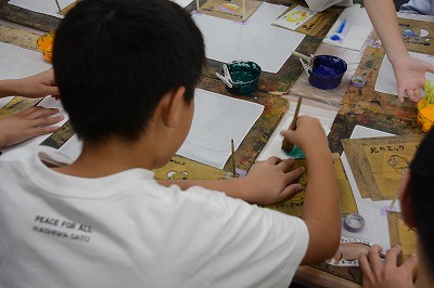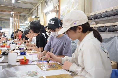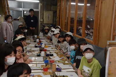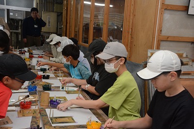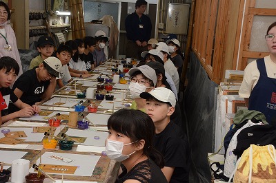 友禅染の体験をしました。お店の方から説明を受けたあと、子どもたちは最初は恐る恐る色付けをしていましたが最終的にはとても素敵な作品ができました。