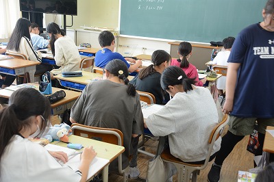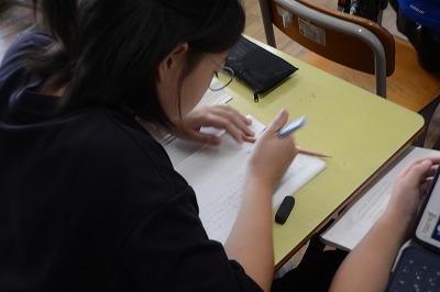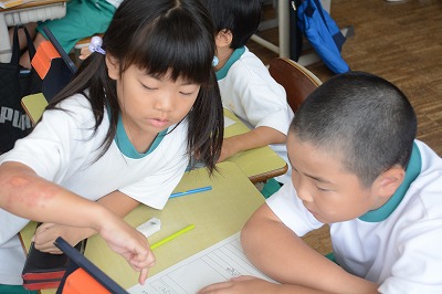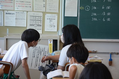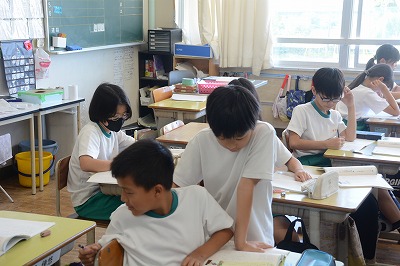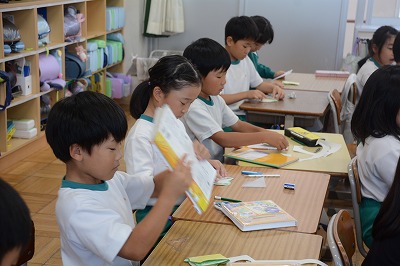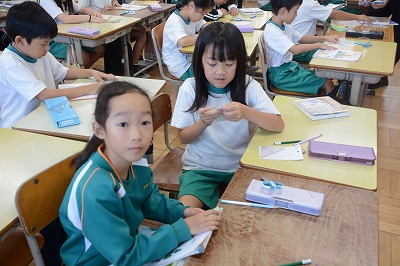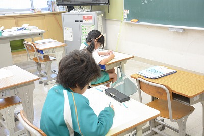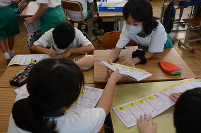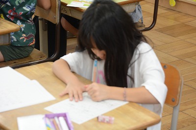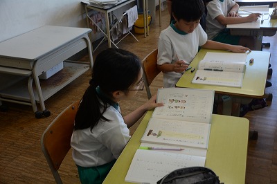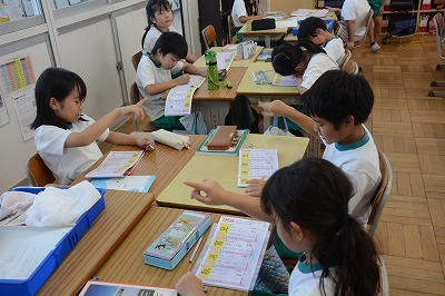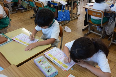 ◇国語 漢字の練習 グループで指書きやなぞり書きをしたあとドリルに丁寧に書いていきました。お互いに見せ合いながら、最後に担任に提出していました。