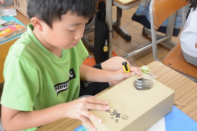 ◇図工 細かい窓をいっぱいつけてだんだん完成に近づいてきました