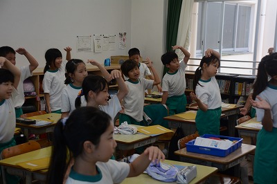 ◇学活 デイキャンプで踊るダンスの練習をしていました。
