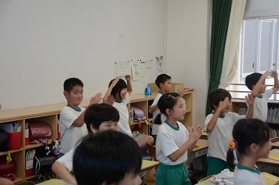 ◇外国語 音楽に合わせて体でローマ字を表現しています